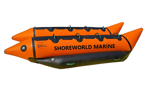 A banana boat (inflatable recreational boat) is an unpowered, inflatable vessel designed to be towed, typically featuring a large, tube-shaped main section and two smaller stabilizing tubes, accommodating multiple riders. It is made of Hypalon & Neoprene Rubber Fabric. Available in multiple sizes and person capacity. For more details call us +91-8910667751