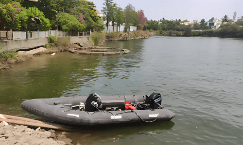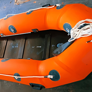 A rigid inflatable boat (RIB), also rigid-hull inflatable boat or rigid-hulled inflatable boat (RHIB), is a lightweight but high-performance and high-capacity boat constructed with a rigid hull bottom joined to side-forming air tubes that are inflated with air to a high pressure so as to give the sides resilient rigidity along the boat’s topsides. The design is stable, light, fast and seaworthy. The inflated collar acts as a life jacket, ensuring that the vessel retains its buoyancy, even if the boat is taking on water. The RIB is an evolutionary development of the inflatable boat with a rubberized fabric bottom that is stiffened with flat boards within the collar to form the deck or floor of the boat.
